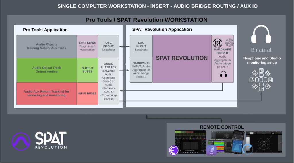 Thanks to the recently added support for separate input and output audio devices in SPAT Revolution, you can now use audio bridging for input while using your audio interface for SPAT Revolution output. It comes to highlight one challenge if you need to return the render to Pro Tools for bouncing / monitoring. As when the Pro Tools playback engine is set to this audio bridge device, although it provides an I/O solution to SPAT Revolution you have no way to actually send your monitoring output to an audio device. To the rescue here is the use of aggregate devices available in macOS or with some specific drivers in Windows.
