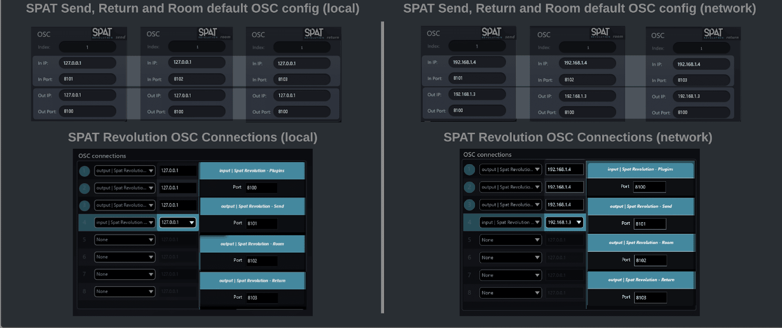 The last part of this integration is to configure the OSC connection in SPAT Revolution. This is already pre-configured in the SPAT plugin suite when the LAP is not enabled. More on the subject on the OSC Connectivy section below.