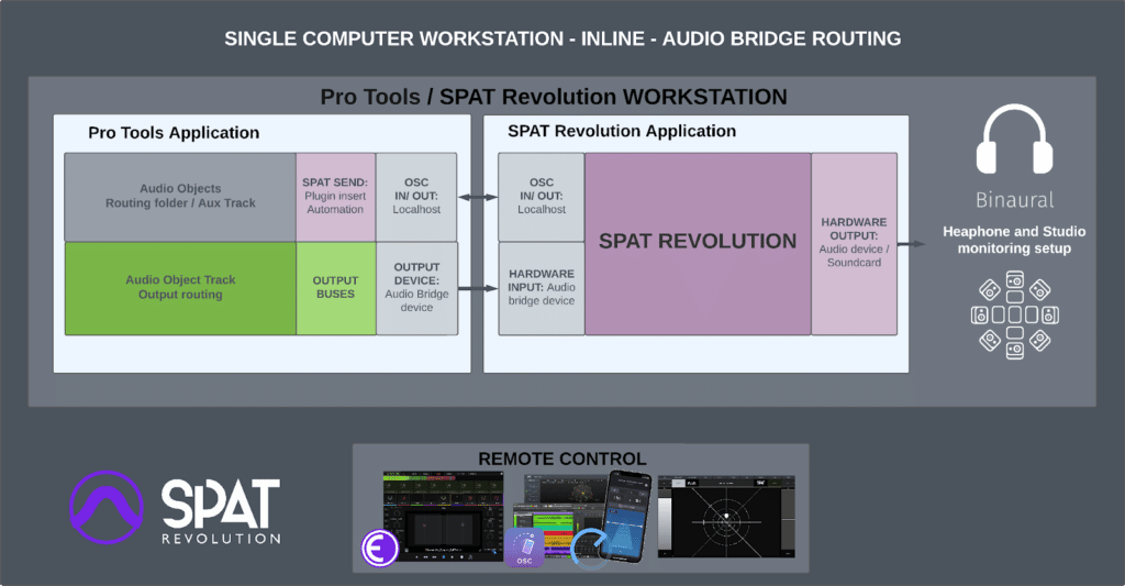 - We are in an in-line workflow where Pro Tools audio tracks (audio objects) are being rendered by SPAT Revolution, which in return is outputting to an audio system.