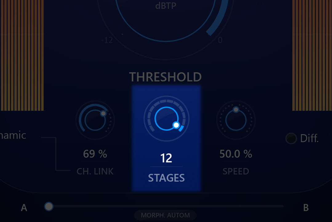 For truly delicate and fine processing tasks, Elixir presents an innovative concept called Stages, providing the option to set the algorithm to perform the limiting processing in multi-stages with up to 12 stages in order to achieve even more precise and natural sounding results.