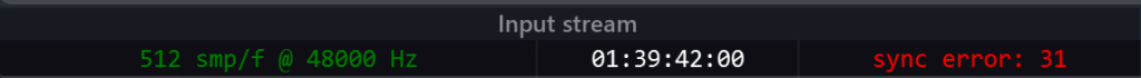 Print When experiencing sync issues in SPAT Revolution using Local Audio Path, the sync indicator in the bottom left corner turns to red and displays “sync error”. It may result in clicks, noises, and/or loss of sound.