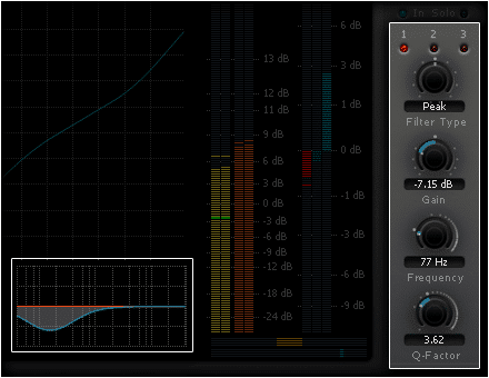 Each of the three eq-bands provides; Gain, Frequency and Q-Factor, as well as five different Filter Types: