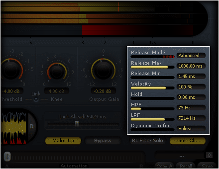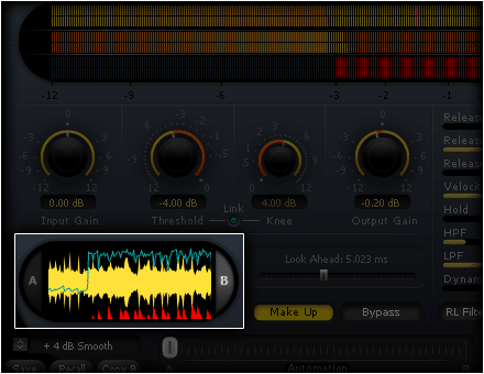 - Lookahead (0/20 ms), for a decrease in the gain before any potential audio peaks. a key-point for avoiding audio distortion.