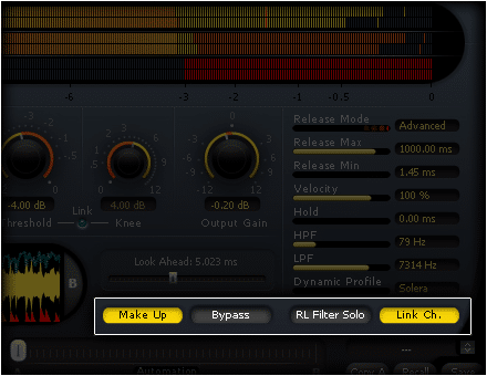 - Link Channels, linking the limiting on one channel to limit the other(s) as well.