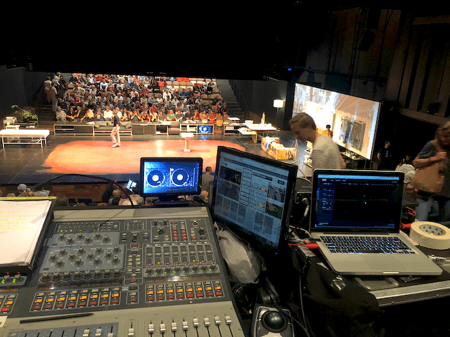 In the another play, an actor is playing different roles, such as the maitre d’hote / hotel clerk, or a vendor who is selling strawberries on the beach. “When he’s shouting from off stage, like ‘Buone fragole!’ or making an announcement in the hotel, we use Spat to place it so it sounds like he’s located where we want him,” describes Sterk. “The results moving from the rehearsal room to the venue are amazing. We even use Spat as a reverb engine for some objects in the rooms that don’t move, and we use it as a surround burst.”