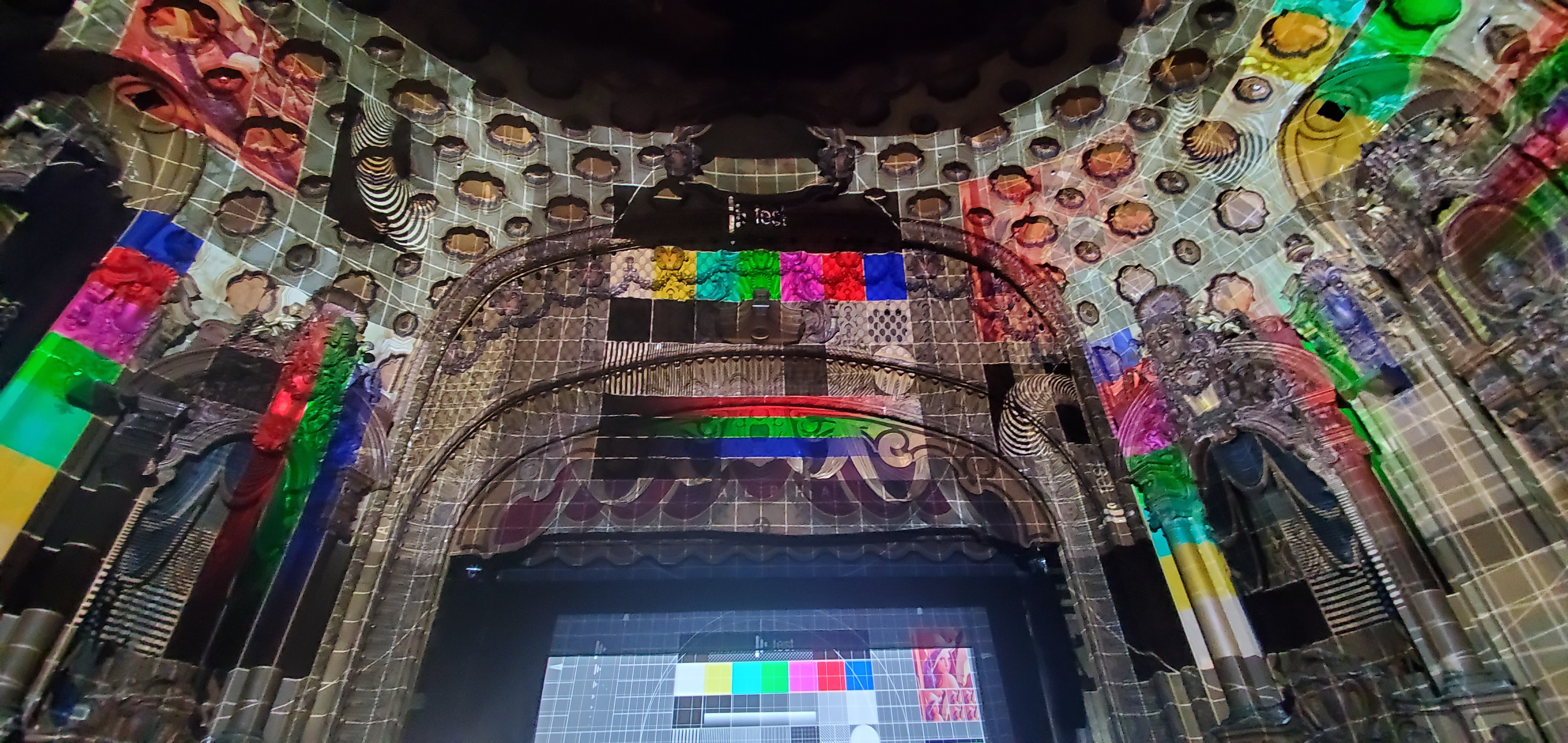 The project was a temporary install for an event at the historic Los Angeles Theatre. “People showed up to watch a movie and had no idea what was about to happen,” recounts Moore. “Previews start to roll, it looks like a normal commercial for a game, and then all of a sudden — boom!— the commercial explodes out from the front screen and lights up the entire roof, the sides, and all the way behind people. We showed immersive commercials for four different games, which required a combination of projection mapping of the entire theater in 360° in conjunction with holograms at the very front.