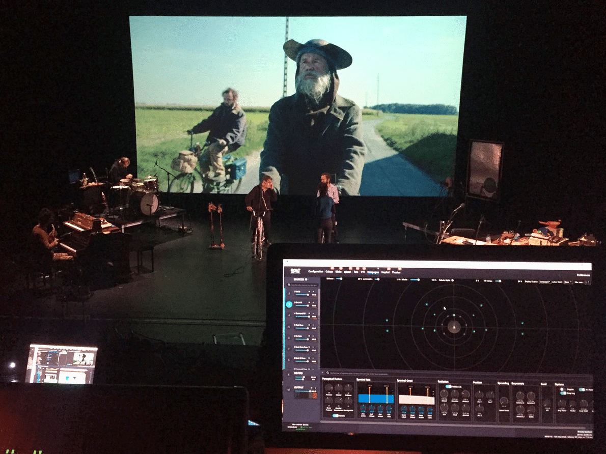 In this Live Cinema Performance, now on tour in France and abroad, the ensemble with two musicians and three actors takes us on a journey between southern Spain and Picardy in France, between the Middle Ages and the beginning of the third millennium, with the music, sound effects and the voices performed live on stage to the movie, mixed and processed in 9.1 using Spat Revolution.