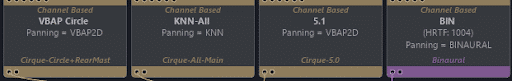 Figure 5: Various different Speaker Arrangements and Panning Types used simultaneously in one and the same project