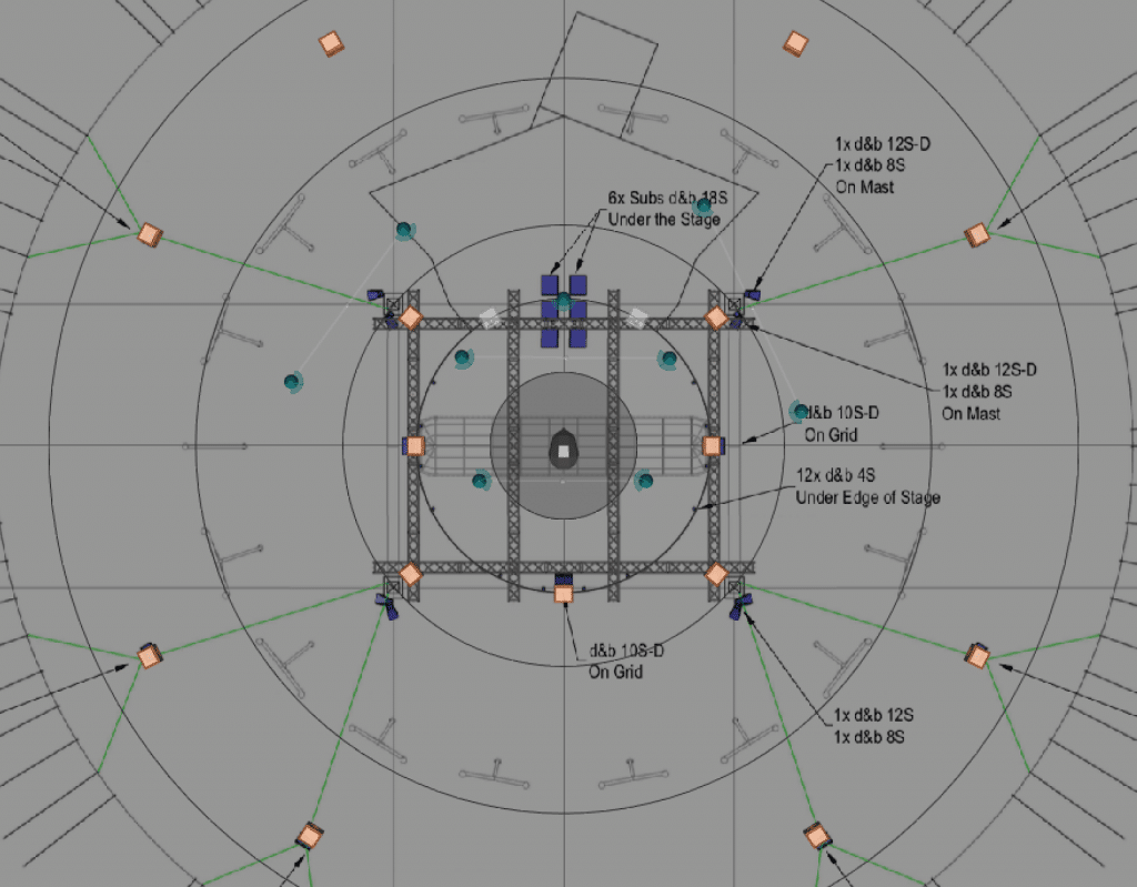 A very important point to understand when working with immersive audio is how some panning techniques are relative to a central listening position. Various panning techniques commonly exist (non-proprietary) and a manufacturer would typically pick one of those methods. VPAB and High Order Ambisonic room panning for example will typically require the listener to be positioned in a ‘’sweet spot’’ (although sweet spot size can be controlled in some case). This is clearly a challenge for concert, theatrical stage and installation where the audience can be all over the place.