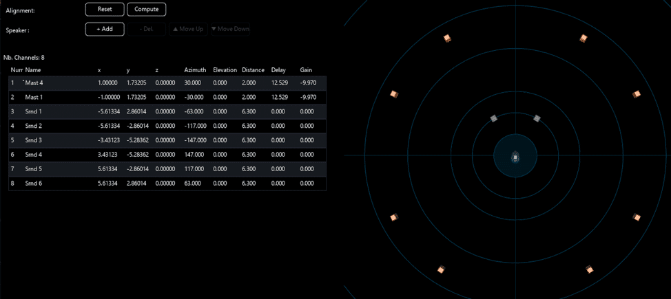 Figure 3: The Speaker Config window and the ability to ”Computer” Gain and Delay.
