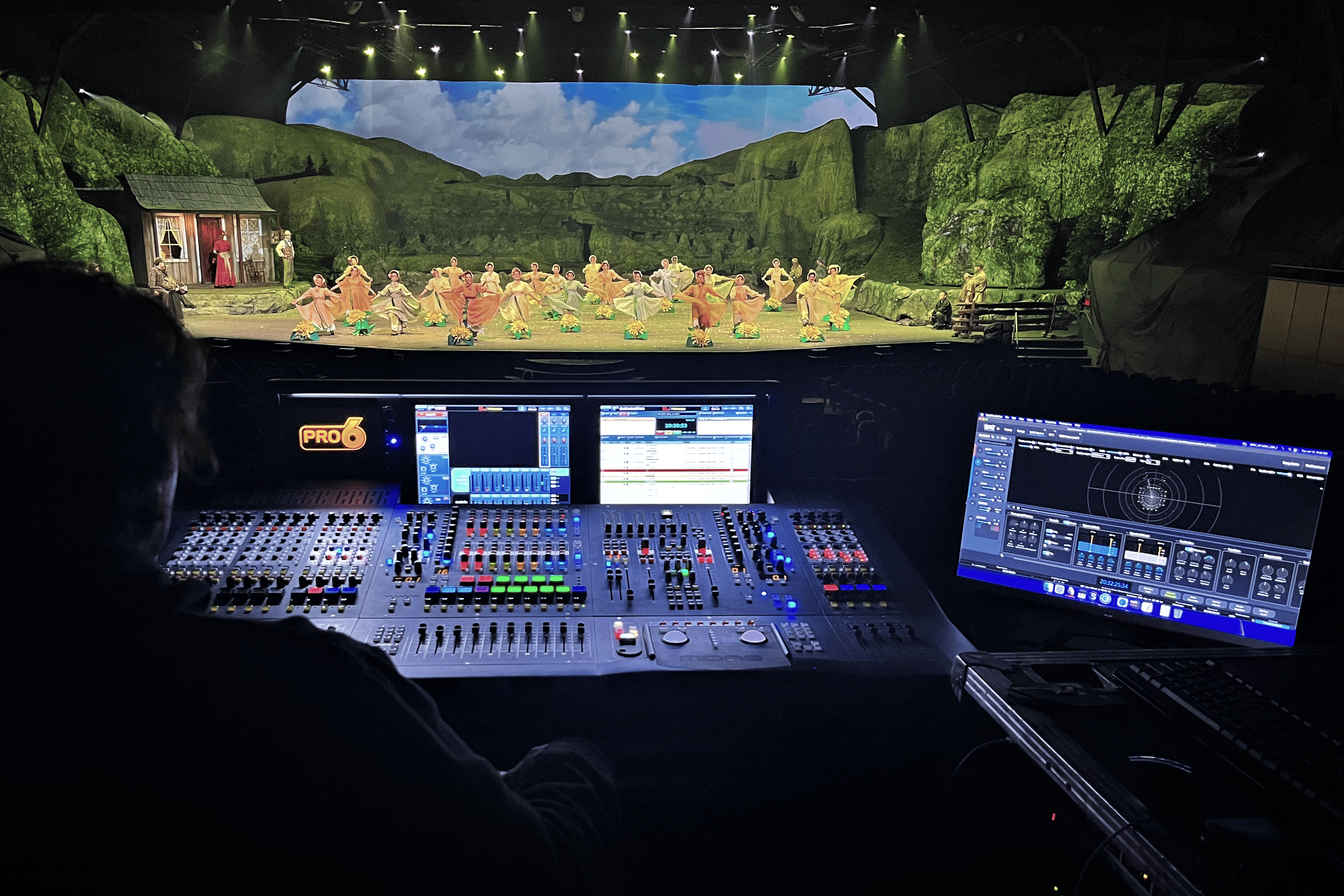 The show runs through a Midas Pro 6 console with an extended loudspeaker configuration from CODA Audio installed in the theater, and previously the show was set on a standard 5.1 system controlled by the surround panning on the very same Midas console, with only 24 channels of playback. The upgrade, and the installation of the new immersive sound system, now with a new soundtrack and over 200 audio tracks introduced significant challenges due to really short deadlines, and with the supply challenges of the last year (due to covid), still the installation was presenting a surprisingly pleasant end result.