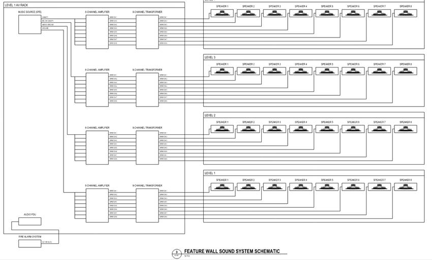 “When BCIT contacted us for ideas, we settled on a four-level life-size soundscape of an offshore outcropping where waves crashed on the rocks below and birds nested in the trees above. There would be 8 discreet ceiling speakers installed in each of the walkways of the 4 floors overlooking public space, for a total of 32 speaker channels.”, said Lien.